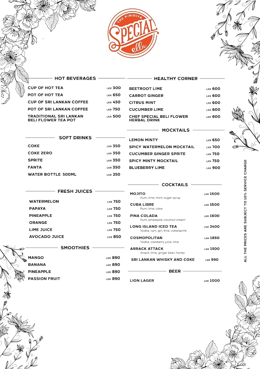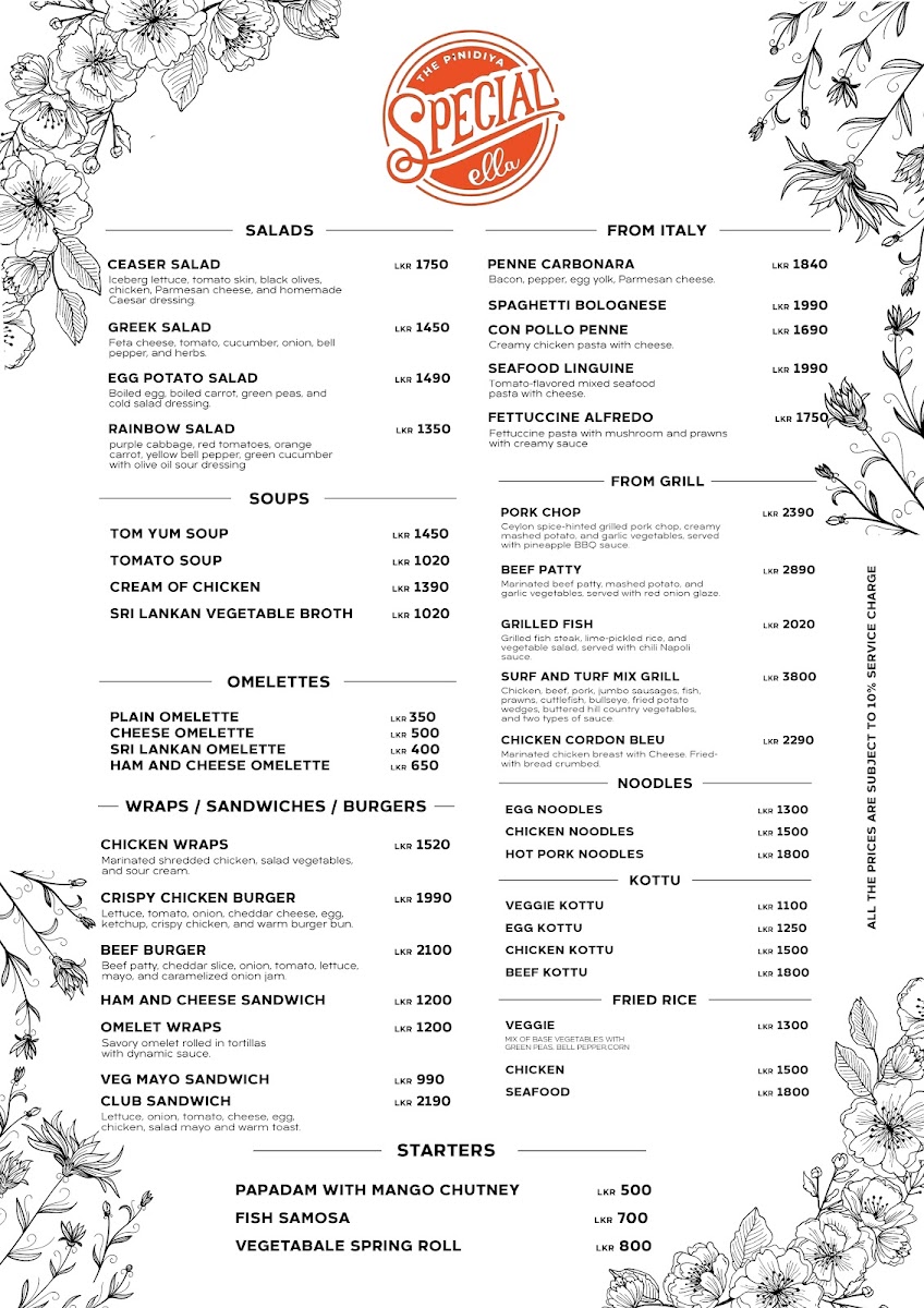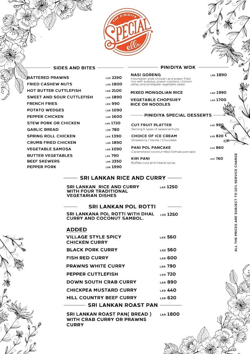 The Pinidiya Special offers a menu that blends casual, comforting meals with familiar local flavors, ideal for a relaxed family outing or a quick, satisfying bite. The selection features hearty Sri Lankan rice and curry dishes alongside approachable fast-food favorites, creating a welcoming mix that fits effortlessly into the laid-back atmosphere of Ella.